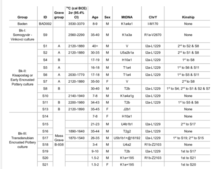 • Андрею Степанову. Теперь по поводу игрек-линий людей Кипопоштаг. Взгляните здесь: Легко заметить, что люди Кипопоштага были носителями игрек-линии I2a-L1229 и только её. Эта линия никакого отношения к динарику не имеет. У людей инкрустированной керамики к этой линии добавляется еще линия ямников R1b-Z2103, что очень хорошо согласуется с результатами аутосомных изменений. У Кипопоштагов 42% охотников (EHG и WHG), 41% фермеров и 17% степняков. У инкрустированной керамики пропорции компонентов меняются в пользу степняков и фермеров --  29% охотников обоих компонентов (EHG и WHG), 46% фермеров (это очень много) и 25% степняков, но очевидно, что эти степняки имеют отношение к ямному, а не шнуровому сообществу. Теперь пару слов про линию I2a-L1229. Она вовсе не имеет отношение у Украине или даже Румынии и якобы прятавшимся там охотникам. Взгляните на игрек-фулл - https://www.yfull.com/tree/I-L1229/ Тут вам испанцы, португальцы, французы, ирландцы и шотландцы. Очевидно, что эта линия шла с фермерами Пиренейского полуострова по берегу Атлантического океана в Британию и далее в Центральную Европу. Более вышестоящая ветвь для этой линии была обнаружена у человека бронзового века из Словении (2400 год до н.э.). Видимо оттуда предки Кипопоштагов и пришли в Венгрию. Разумеется, эти люди никак не могли превратится в эстонских бронзовиков. И игреки у них совсем иные и аутосомный состав другой. Так что вы с Васильченко опять сели в лужу.